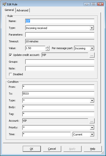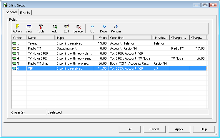Billing module uses a list of billing rules to process received and sent message. During this process a billing request is created for each message.